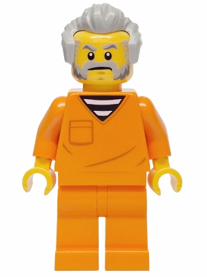 Police - City Jail Prisoner Male, Orange Prison Jumpsuit, Light Bluish Gray Hair, Beard and Sideburns