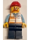 Construction Worker - Male, Orange Safety Vest with Reflective Stripes, Dark Blue Legs, Red Construction Helmet