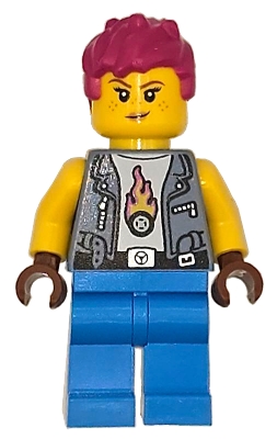 Soapbox Race Car Mechanic - Female, Sand Blue Vest, Dark Azure Legs, Magenta Messy Hair, Freckles