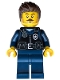 Police - City Officer Male, Black Safety Vest with Silver Star Badge Logo, Dark Blue Legs, Dark Brown Wavy Hair