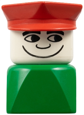 Duplo 2 x 2 x 2 Figure Brick Early, Male on Green Base, Red Police Hat