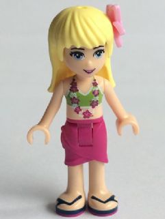 Friends Stephanie - Magenta Wrap Skirt, Lime Bikini Top, Flower
