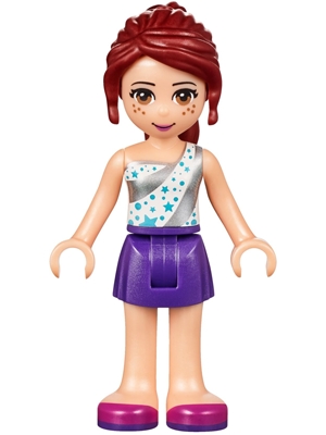 Friends Mia - Dark Purple Skirt, White One Shoulder Top with Stars