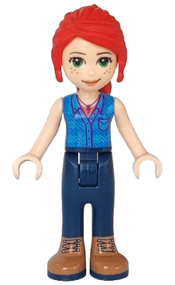 Friends Mia - Dark Blue Trousers, Dark Azure Plaid Shirt, Red Ponytail
