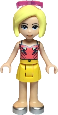 Friends Roxy - Coral Halter Top with Bright Light Green Leaves, Yellow Skirt, Silver Shoes, Sunglasses