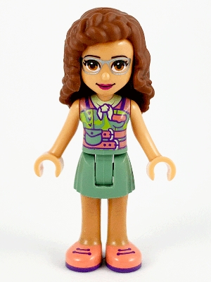 Friends Olivia (Nougat) - Sand Green Skirt, Sand Green Top, Coral Shoes