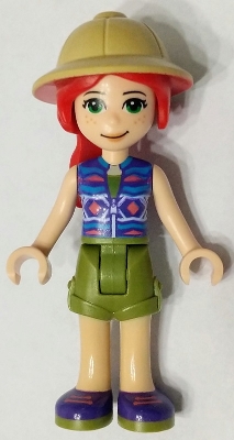 Friends Mia - Olive Green Shorts, Dark Azure and Dark Purple Patterned Sleeveless Jacket with Zipper, Pith Helmet