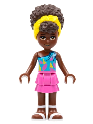 Friends Nandi - Dark Azure Single Strap Tank Top, Dark Pink Skirt, White Sandals, Yellow Head Wrap