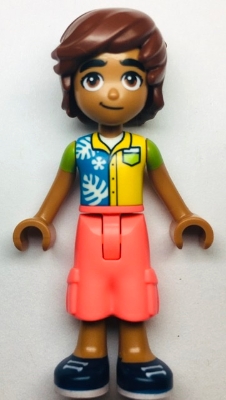 Friends Leo - Dark Azure, Yellow, and Lime Shirt, Coral Cropped Trousers, Dark Blue Shoes