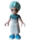 Friends Charli - White Apron Top over Dark Turquoise Shirt, White Skirt Long, Medium Blue Shoes