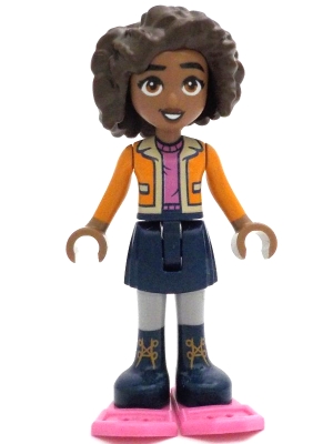 Friends Aliya - Orange Jacket over Dark Pink Sweater, Dark Blue Skirt, Dark Pink Snowshoes