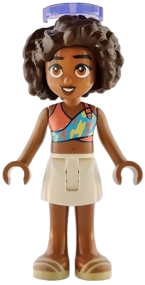 Friends Aliya - Coral, Medium Azure and Bright Light Yellow Top, White Skirt, Tan Sandals, Trans-Purple Sunglasses