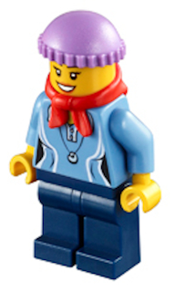 Medium Blue Female Shirt with Two Buttons and Shell Pendant, Dark Blue Legs, Red Bandana, Medium Lavender Knit Cap