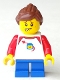 Girl - Shirt with Red Collar, Spaceship Orbiting Classic Space Helmet, Blue Short Legs, Ponytail and Swept Sideways Fringe, Freckles