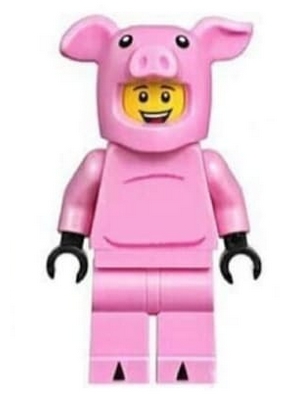 Dragon Dance Performer, Pig Costume, No Tail, Open Mouth Smile with White Teeth and Red Tongue