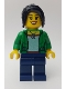 Dragon Boat Race Spectator - Female, Green Jacket Open with Necklace, Dark Blue Legs, Black Ponytail Long with Side Bangs