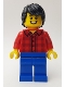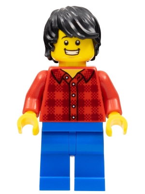 Dragon Boat Race Spectator - Male, Red Plaid Flannel Shirt, Blue Legs, Black Tousled Hair