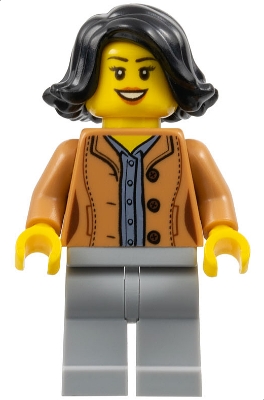 Woman, Black Hair, Medium Nougat Jacket, Dark Bluish Gray Shirt, Light Bluish Gray Legs