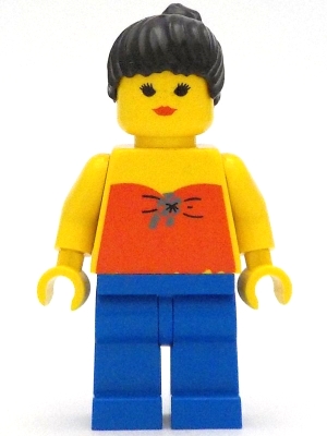 Red Halter Top - Blue Legs, Black Ponytail Hair, Closed Mouth