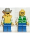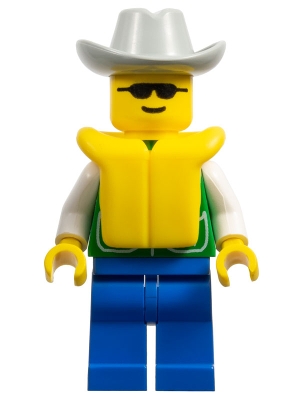 Jacket Green with 2 Large Pockets - Blue Legs, Light Gray Cowboy Hat, Life Jacket