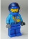 Dark Azure Racing Jacket with Zipper and Yellow Lightning Bolt Pattern, Blue Helmet, Trans-Brown Visor