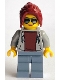 Race Marshal - Female, Light Bluish Gray Hoodie over Dark Red Shirt, Sand Blue Legs, Dark Red Ponytail Long with Side Bangs, Sunglasses and Medium Nougat Lips