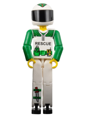Technic Figure White Legs, White Top with Black 'RESCUE' and Green Belt Pattern, Green Arms, White Helmet with Green Snake, Black Visor - With Sticker