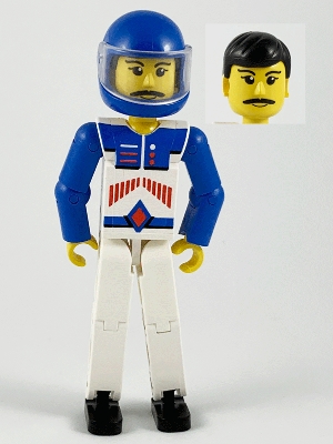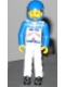 Technic Figure White Legs, White Top with Red Arrow-Type Stripes Pattern, Blue Arms, Blue Helmet