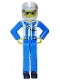Technic Figure Blue Legs, White Top with Zipper and Blue Shoulder Harness Pattern, Blue Arms, White Helmet, Trans-Clear Visor