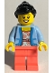 LEGO Store Customer - Female, Bright Light Blue Jacket over White Shirt with Coral Flowers, Coral Legs, Black Ponytail