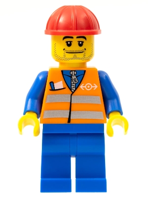 Orange Vest with Safety Stripes - Blue Legs, Beard Stubble, Red Construction Helmet