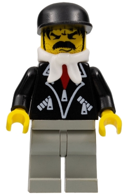 Leather Jacket with Zippers - Light Gray Legs, Black Cap, Bandana
