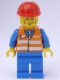 Orange Vest with Safety Stripes - Blue Legs, Brown Eyebrows and Cheek Lines, Red Construction Helmet