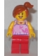 Child - Bright Pink Top with Butterflies and Flowers, Red Legs, Off-center Ponytail
