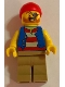 Pirate Man, Striped Red and White Shirt Under Blue Vest, Red Bandana, Left Eye Patch and 3 Gold Teeth, Dark Tan Legs