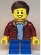 Child - Boy, Dark Red Jacket, Blue Short Legs, Dark Brown Hair, Freckles