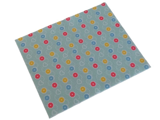Duplo, Cloth Blanket 8 x 10 cm with Coral, Medium Blue and Yellow Flowers and Hearts Pattern