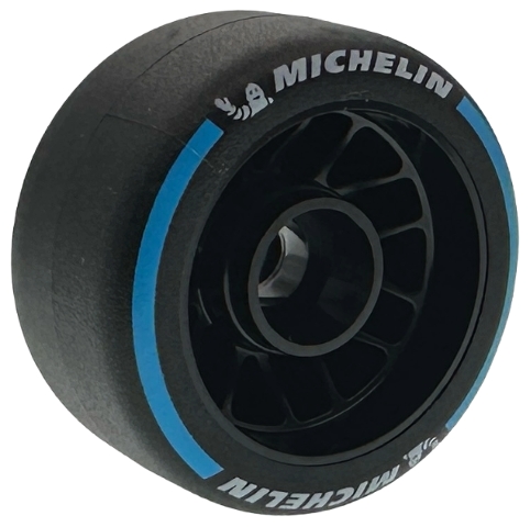 Wheel 24 x 13.4 with Pin Hole with Molded Black Hard Rubber Tire and Printed White Michelin Logo and Dark Azure Arcs Pattern