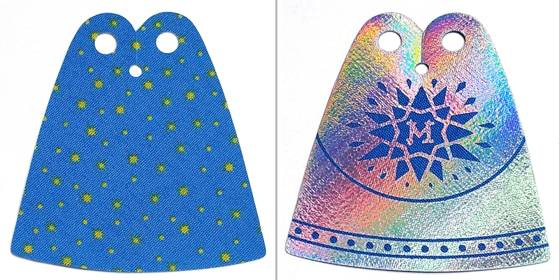 Mini Doll, Cape Cloth, Friends, Tapered with 2 Small Top Holes, Blue Side with Yellow Stars and Iridescent Side with Dark Blue Star and Letter M Pattern