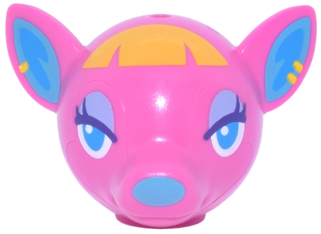 Minifigure, Head, Modified Deer with Ears with Dark Azure Eyes, Lavender Eyelids, Medium Azure Nose and Auricles, Yellow Hair and Earrings Pattern