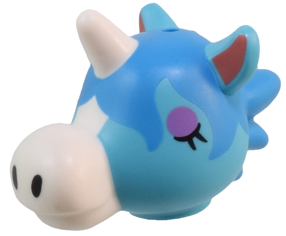 Minifigure, Head, Modified Unicorn Wide with Molded Dark Azure Hair, White Nose and Horn, and Printed Coral Inner Ears, Black Nostrils, and Medium Lavender Eyelids / Eyes Pattern