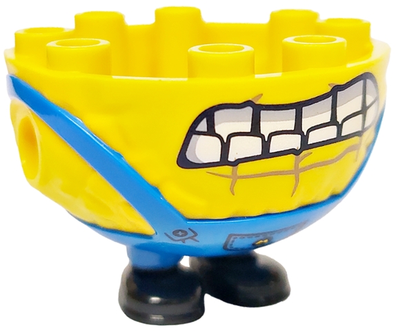 Lower Body, Rounded, Extra Wide and Short, Short Legs with Molded Black Shoes and Blue Overalls and Printed Black Mouth with White and Light Bluish Gray Teeth, Buttons, and Pocket with Minions Letter M Logo Pattern