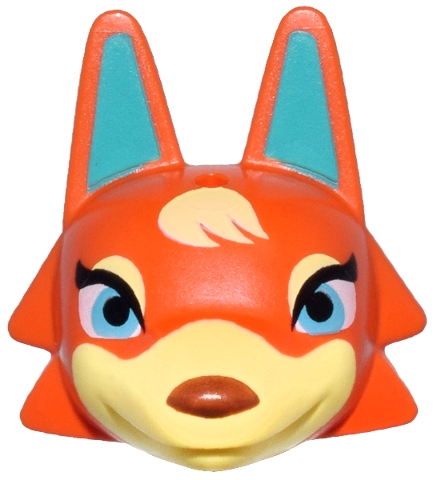 Minifigure, Head, Modified Wolf with Pointed Ears with Molded Bright Light Yellow Face and Printed Dark Turquoise Auricles, Bright Pink and Medium Azure Eyes, and Reddish Brown Nose Pattern