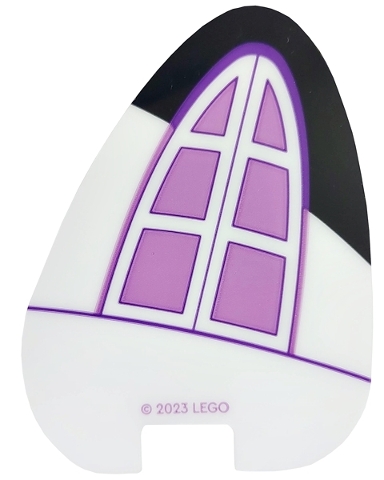Plastic Part for Set 10788 - White Cat Ear with Black Tip, Medium Lavender Window with Dark Purple Outline Pattern