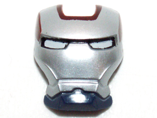 Minifigure, Visor Top Hinge with Silver Face Shield, White Eyes and Dark Red Trim Pattern