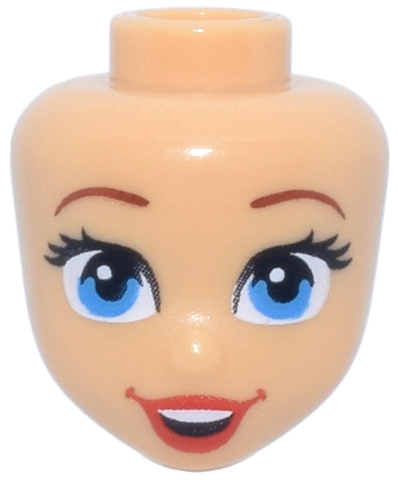 Mini Doll, Head Friends with Reddish Brown Eyebrows, Black Eyelashes, Dark Azure Eyes, Red Lips, and Open Mouth Smile with Top Teeth Pattern