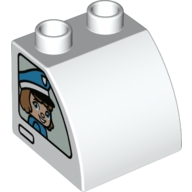 Duplo, Brick 2 x 2 x 1 1/2 Slope Curved with Policeman Boy on One Side and Policeman Girl on Other Side Pattern