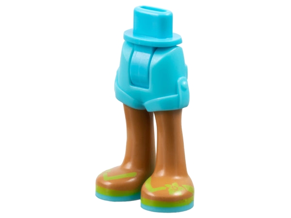 Mini Doll Hips and Shorts Folded Hem with Medium Nougat Legs and Lime Sandals with Medium Azure Soles and Straps with Flowers Pattern - Thick Hinge