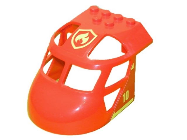 Aircraft Fuselage Forward Top Curved 6 x 8 x 4 with Yellow and Red Fire Logo Badge, Yellow Stripes and Number 10 Pattern on Both Sides (Stickers) - Set 60217