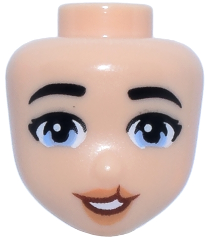 Mini Doll, Head Friends with Black Eyebrows, Bright Light Blue Eyes, Nougat Lips and Reddish Brown Open Mouth Smile with Cleft Lip Pattern